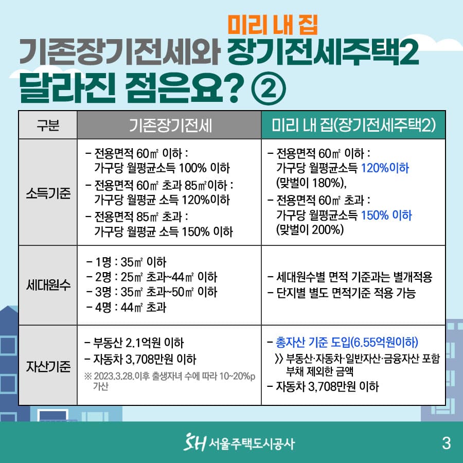 - 소득 기준은 가구 월평균 소득 120% 이하 (맞벌이 180%)